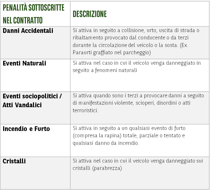 Tali limitazioni sono formalizzate nel contratto di noleggio e non hanno natura assicurativa.