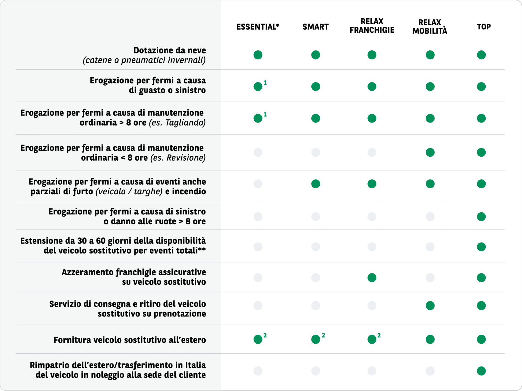 VETTURA SOSTITUTIVA | LIVELLI DI SERVIZIO