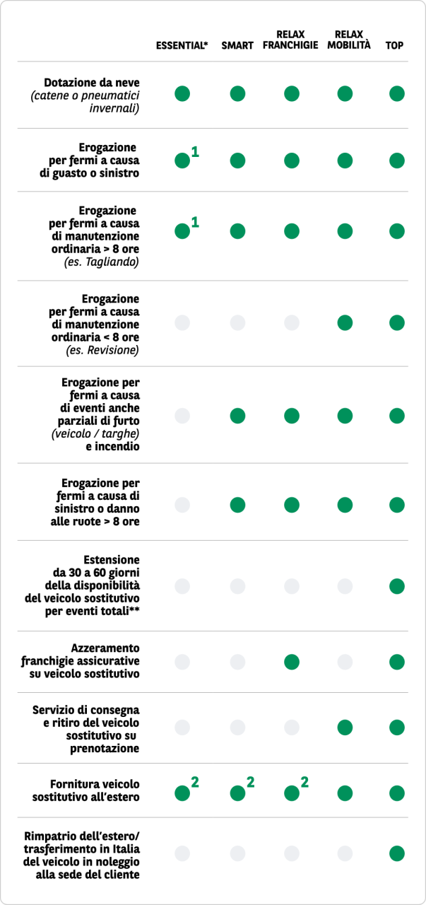 (1) - Se fermo da più di 7 giorni. Il veicolo sostitutivo sarà fornito a partire dall'8° giorno, dopo la consegna della richiesta.