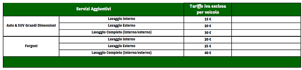Il servizio di disinfezione è sempre incluso. In aggiunta puoi richiedere il lavaggio interno e/o esterno ed il rifornimento di carburante.